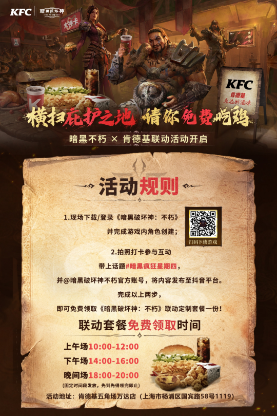 不朽美味,能量满格!《暗黑破坏神:不朽》×肯德基 联动今日热辣开场