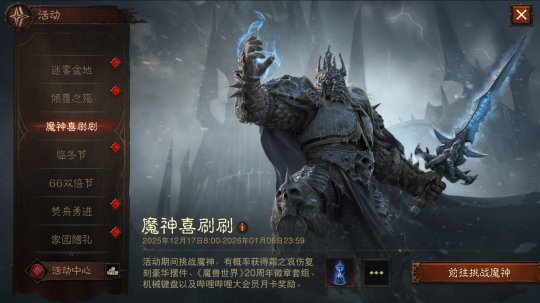 创世之子的阴谋终于平息,艾泽拉斯的亡灵大军又一次崛起……冰荒废土上,王座的阴影再度显现。 《暗黑破坏神:不朽》×《魔兽世界》联动已再度开启!在全新的“魔神喜刷刷”活动中完成魔神挑战,赢取魔兽周边奖励!迷雾盆地热血回归,联盟部落战旗背饰限时返场!更有全新联动传奇时装“倾覆之殇”,演绎女妖之王希尔瓦娜斯和巫妖王阿尔萨斯的纠缠宿命。此外,魔兽 20 周年联动背部幻化“夺宝袋”也限时回归,把握这次绝佳的补票机会! 联动传奇宝石“哀伤之颅”即将上架商城,冒险者们可再一次驾驭另一个世界的力量,号令天灾军团的亡者之力! 魔兽联动奖励兑换码 一枚蕴含符文之力的联动奖励兑换码已就绪,使用“王权没有永恒”,即可获得不朽钥石、小宝石和神秘套装,继续你的庇护之地冒险。 兑换方式和详细规则,请见图片说明。 魔神喜刷刷,赢取霜之哀伤 魔兽联动活动“魔神喜刷刷”活动现已开启,在活动期间,完成魔神挑战,即有机会获得 1:1 霜之哀伤复刻摆件、周年徽章套组、机械键盘等《魔兽世界》主题周边,以及哔哩哔哩大会员月卡等奖励。 在 2026 年 1 月 6 日 23:59 前,只要有魔神挑战奖励次数,击败魔神即可参与活动,让“魔神喜刷刷”,为你的周常再添一份惊喜! 迷雾盆地,热血回归 联动战场玩法“迷雾盆地”也在本次活动中热血回归。 冒险者将组成 8v8 的对抗小队,延续艾泽拉斯的联盟与部落之争,在熟悉的伐木场、铁匠铺与马厩等场景中展开激烈交锋,为阵营荣耀而战。 参与活动,即可获得金币、养成材料等奖励。你还可将两款返场的联盟、部落战旗背饰(限时 30 天)收入囊中,让阵营的象征在庇护之地高高飘扬。 传奇时装“倾覆之殇” 吟唱上层精灵的挽歌,轻诉洛丹伦森林的低语,两位艾泽拉斯的传奇人物,也来到了庇护之地。 全新的联动传奇时装“倾覆之殇”已经开启探索,并且对应不同角色性别呈现全然不同的外观表现。你可身着这套时装,化身号令天灾军团的巫妖王阿尔萨斯,手持以霜之哀伤为灵感设计的武器,让整片庇护之地都在你的统御之下颤抖。但王权没有永恒,你亦可扮演女妖之王希尔瓦娜斯,背负被遗忘者的悲惨遭遇,将怒火化作黑蚀箭,向恶魔尽情倾泻。 猎魔人职业 从洛丹伦王子到巫妖王,从银月城游侠将军到女妖之王,天灾永远地改变了他们,而今,宿命之战将在《暗黑破坏神:不朽》中再次上演。 你可以在2026年1月27日2:59前参与活动,获取这套全新的传奇时装,首次探索免费。 野蛮人职业 传奇宝石“哀伤之颅”归来! 收割灵魂,号令亡者,《魔兽世界》联动传奇宝石“哀伤之颅”也将于本次联动活动中返场,携符文之力重返庇护之地。 这颗二星传奇宝石中蕴含着巫妖王本尊的力量。当你佩戴“哀伤之颅”造成伤害时,将号令巫妖王幻影挥舞霜之哀伤收割周围敌人的灵魂,在短时间内获得伤害提升。随着被收割的灵魂数量增加,你的伤害也会进一步提高。 当“哀伤之颅”的等级提升到3级后,收割灵魂还能提供额外的效果:你的攻击会释放两个卑劣的灵魂,在命中目标位置处造成范围伤害。 自2025年12月31日起,冒险者可以于游戏内商城购买“魔兽联动”系列礼包,以获取“哀伤之颅”和其它游戏道具,错过此前联动传奇宝石的玩家,可以把握本次机会,掌握巫妖王的力量。 具体礼包内容和售卖时间如下: 魔兽联动限时礼包 购买后,可获得包括永恒石、强化不朽钥石、“哀伤之颅”、大地珍珠在内的多样奖励。 售卖时间:2025年12月31日 – 2026年1月27日 2:59 魔兽联动限时登录礼包 购买后可立即获得1680永恒石,累计登录还可获得传奇宝石“哀伤之颅”、2星传奇宝石随机自选宝箱、强化不朽钥石等海量福利。 售卖时间:2025年12月31日 – 2026年1月27日 2:59 魔兽狂欢限时礼包 购买后,可获得包括永恒石、强化不朽钥石、2星传奇宝石自选宝箱在内的多样奖励。 售卖时间:2026年1月5日 – 2026年1月31日 2:59 联动幻化“夺宝袋”返场 《魔兽世界》 20 周年联动背部幻化 “夺宝袋” 也已回归! 如果你在上次联动期间错过了这份奖励,那么这一次就是绝佳的补票机会。 即日起至 2026 年 3 月 2 日,在《暗黑破坏神:不朽》中达到 10 级及以上、且未领取过“夺宝袋”幻化的玩家,登录游戏后,都将收到一封游戏内邮件。邮件中将包含一个专属礼包兑换码。 前往《魔兽世界》官网,输入兑换码,即可在《魔兽世界》正式服中领取联动礼物 “背部幻化·夺宝袋”。 解锁魔兽家宅,赠送传送门 恭喜艾泽拉斯的勇士们“入驻新家”! 即日起至 2026 年 3 月 2 日,在《魔兽世界》中解锁了家宅系统的玩家(获得成就“欢迎回家”),可前往《暗黑破坏神:不朽》,领取一款银月城主题的传送门“辛多雷之门”。 活动期间,在游戏内的【家园赠礼】活动页面,点击页面中的【领取】按钮,完成账号验证,即可解锁传送门奖励。 《暗黑破坏神:不朽》×《魔兽世界》联动已再度开启,即刻上线游戏,登阶冰封王座! |