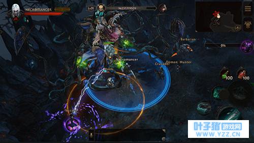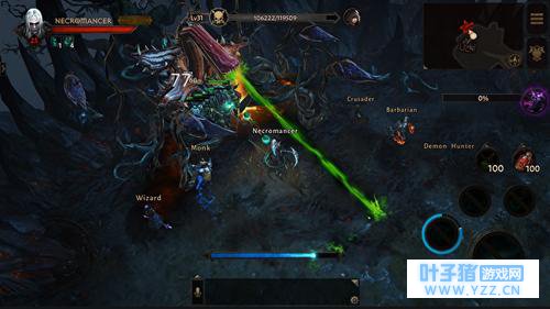 而接著,暴雪还放出职业介绍,预计将推出包括野蛮人、圣教军、狩魔猎人、死灵法师、秘术师以及武僧在内的六大职业,并且加入全新的技能Combo,让玩家可以自由发挥。 此外,开发团队还表示未来预计将随著时间加入新职业,并且听取社群中玩家们的意见,陆续增加全新职业。至于玩家们关心的操控方式,究竟会不会因为智能手机的限制,让玩家以往认为有著良好游戏体验的《暗黑破坏神》系列作有难以有所突破呢?开发团队表示,《暗黑破坏神:不朽》事实上就是一款非常“暗黑”的游戏,不会因为它是一款手游而有所改变。暴雪希望透过虚拟摇杆的方式,尝试在触控装置上带给玩家最真实的体验。其中直觉的操控﹑手感与触控设计让玩家能完全掌控英雄角色,官方指出基本上斩妖除魔的畅快感跟使用摇杆﹑键盘与滑鼠时并没有不同。