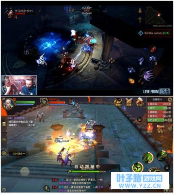 上:《暗黑破坏神:不朽》 下:《无尽神域》 在试玩中,3个职业的技能无论在操作还是画面特效上都能看出明显的暗黑端游风格,法师的陨石术、野蛮人的旋风斩、武僧的七相拳、背景里“老朋友”迪卡德凯恩的声音都带给了玩家满满的熟悉感。大宝箱、手捡装备、精英怪词缀、死亡后原地复活、祭坛塔等暗黑端游的经典元素都良好地传承到了手游中。
