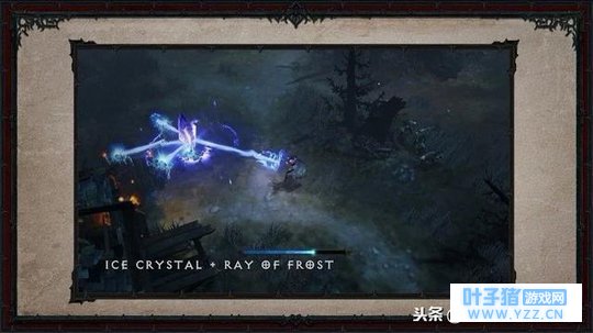 法师: 蔑视传统的狂气天才设定。 技能包括 :陨石术,冰霜射线,冰晶术(二段式技能,一段放置冰晶,二段引爆),这里还演示了一下技能组合,比如先用冰晶术放置一颗冰晶,然后用冰霜射线打向冰晶,则会在冰晶处折射出多个射线攻击附近的敌人。