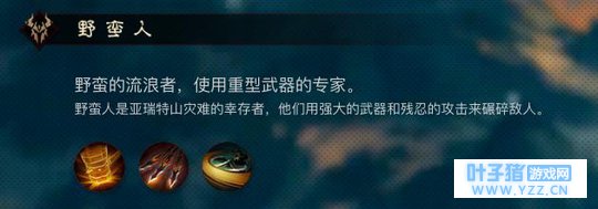 野蛮人简介 先祖之锤 :召锤,砸向位于你前方的敌人 上古之矛 :投掷一把可以伤害并穿透敌人的长矛 旋风斩 :旋转你的利刃,对附近的敌人造成大量伤害