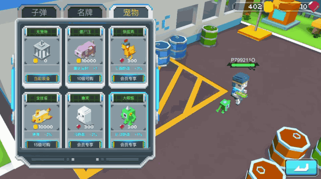 还可以解锁拥有不同技能的角色。 除此之外,角色的自定义选项更多,可以更换不同像素风的子弹、血条样式,和周围飞行的宠物装饰等。
