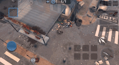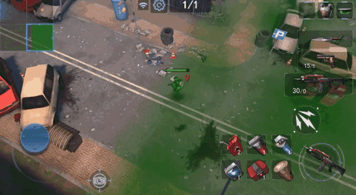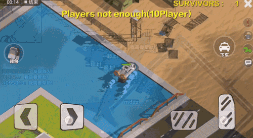 游戏采用锁定的2.5D俯视角,左侧摇杆可以控制角色前后左右移动,用拳头或者其他武器打碎物资箱,触碰即可拾取物品,武器可装备两件切换使用,其他的装备如纱布、急救包等会自动装备在画面右下角并整齐摆放,点击即可使用,长按并拖动到指定区域可丢弃。