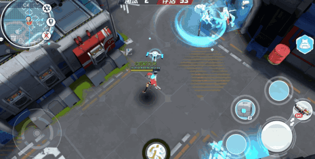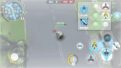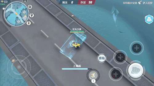 落地后的首要任务自然是搜寻物资、武器并伺机击败其他玩家,左侧摇杆可以控制角色前后左右移动,右侧则是释放「技能」,这里的「技能」不是角色先天自带,而是将你拾取到的武器或者其他装备道具进行存放,点击即可使用,像是在放技能。