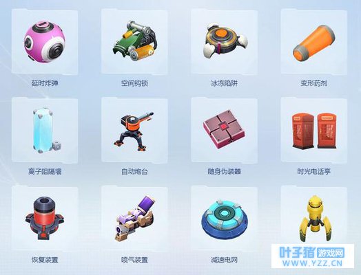 总共14种道具 每人可以携带3种道具 同样只给大家推荐单人模式的选择 空间钩锁:可发射并勾住物体,物体可移动则将其钩至自己面前,物体不可移动则将自己拉到物体面前,冷却时间1秒 冰冻陷阱:原地丢下一个陷阱,敌方不容易发现,若踩到则会被冰冻3秒。陷阱持续60秒,冷却时间1秒 延时炸弹:丢出一枚炸弹,3秒后爆炸,可造成500伤害并产生点燃效果。炸弹被点燃则立即爆炸 自动炮台:安装一座自动攻击敌人的炮台。持续10秒,冷却时间1秒 喷气装置:击飞敌人并造成100伤害,且自身后退一段距离,冷却时间1秒 乱舞塔罗:对周围敌方造成每0.5秒50伤害。持续6秒,冷却时间3秒 这些道具里面有控制有输出 大家可以配合自己拿到的武器搭配道具 比如居合刀+空间钩锁+乱舞塔罗 把敌人拉过来 居合斩的伤害 乱舞塔罗的每秒伤害 再追着砍两刀 差不多了 或者 冰冻陷阱冻住敌人后 电磁炮蓄力秒杀 装备