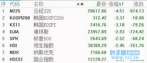 道琼斯指数日K线图 尽管很忐忑,火山君(微信公众号:huoshan5188)还是不得不面对今日A股的走势。果然,在外围多重利空的压迫之下,A股还是没能挺过来:据盘后统计,两市3600多只个股之中,红盘的不到200只,而趴在跌停上个股达到480多只,仅30余只涨停。 不过,A股也不是“一个人”陷入深度调整,包括日经225指数、韩国KOSPI指数、恒生指数在内的多个重要指数也出现大跌:
