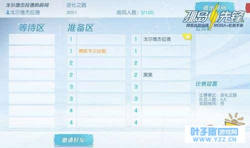 【Tips2:房间界面介绍 】 游戏房间里面,数字相同的人为同一队,玩家点击空位可以直接移动到该位置,点击有人位置则表示提出换位申请,待对方同意后完成位置交换,长按对方名字可以选择添加对方为好友。 需要特别注意的是,玩家退出房间需要点击【退出房间】按钮,点击红色交叉只会离开房间界面,再次点击悬浮窗口按钮即可返回房间。