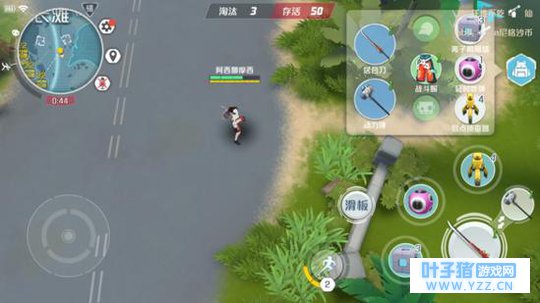 想想之前的生存竞技手游,虚拟瞄准圆盘旁边至少摆满了五六个按钮!想想就很蛋疼。而在开放式的地图上行进时,除了用你的腿,还能使用滑板,它代替了游戏里的载具,是无聊赶路时的好帮手。