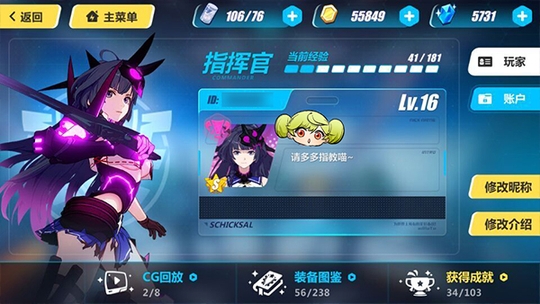 位于左上角,可以在这里编辑舰长的个人介绍和昵称,之所以要把这功能单独拿出来说,是因为玩家卡片界面隐藏了一些“不为人知”且非常容易被忽略的秘密功能。 CG回放:位于玩家卡片界面左下角,可随时欣赏已经解锁的CG动画。