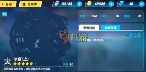 李耳(下) 圣痕技能 宁静之剑:HP为满时,防御提升62% 套装技能: HP为满时,移动速度提升36%