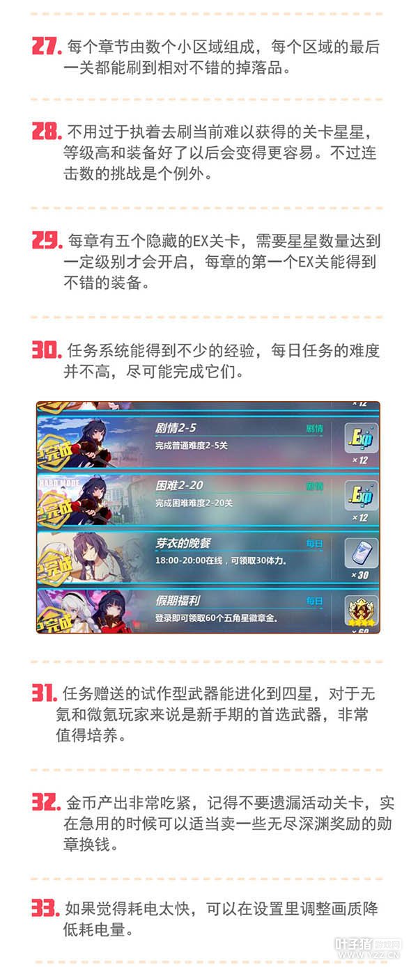 崩坏3国民级萌系横版射击手游,上百种不同类型的关卡、丰富的角色设定以及装备武器,让不少玩家喜爱至极,那么作为一个新手玩家要注意些什么呢,本文小编为大家带来新手玩家必须知道的33条技巧! 了解更多相关信息,请前往http://sy.yzz.cn/bh3/ [编辑:幼儿园扛把子]
