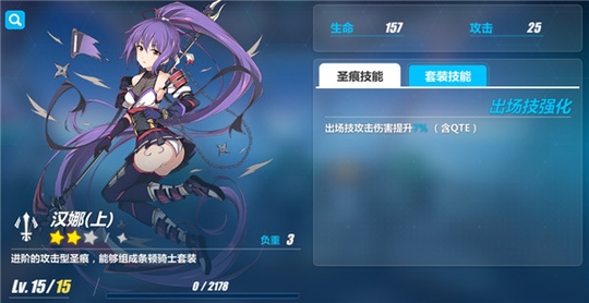 获取方式:第一章地图大量掉落 入手难易:★☆☆☆☆ 初期圣痕,在第一章便能轻松刷齐一套,和同为初始圣痕的莎莲娜相比,夏洛特虽然攻击加成少了2%,但提升的20%防御更加适合琪亚娜「白练」,能让她的神化状态拥有更高的安全性。 汉娜