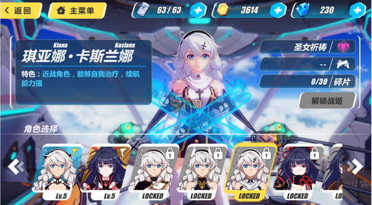 技能解析: 琪亚娜的白练作为初始角色之一,有着稳定的破盾和普通加伤,相对于一些没有武器的非洲萌新还是比较不错的福利 普通攻击的加成加上破盾特效可以提供一个稳定的输出和作用,比较算是实用的角色,打断攻击的时候还附加眩晕特效也不错的,虽然连招不如牙医和其他的如此华丽,也是非常实用的新手角色 相比之下队长技能则没有那么偏向,也是略微实用一点,出场技能也是不错的一个小aoe,就是打出去的几率太小。 闪避毫无特色,也就是减减cd,刚刚上面打错了,是眩晕几率小外加上特殊技难触发 大招还是不错的,那个猫抓可以击飞敌人,做一个持续的控制输出,开启大招出来那个数据在前期还是个不错的伤害 圣女祈祷