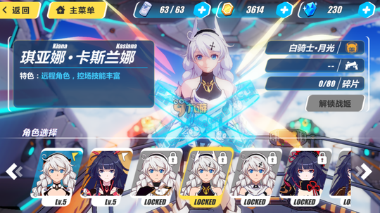 技能解析: 我们来看看圣女琪亚娜,作为唯一可以治疗的角色,虽然治疗量略低,但怎么说也是可以奶了,基本上奶量很少 虽然奶量少也是救救人的,普通攻击则是让她彻底变成了辅助角色,虚弱对面攻击,顺手奶一扣血,队友快死前出场奶一口也就是拖拖生命,不过可以清除负面,虽然不知道以后会不会超神,但是现在基本没几个负面让你减。 闪避则是一个禁锢效果,虽然也没什么用,还鸡肋,敌人在空中还会多个流血buff,用完第一反应,流血呢,虽然不清楚是不是因为是地图抢没输出。 大招则是专门回血,只有不被碰到,那就在圣光的庇护下缓慢回血,结束继续报名减攻击。 队长技能是用来玩琪亚娜大队的,不过冲击腿确实好用,刷浮空不错,但是还是拯救不了鸡肋辅助的命运。 白骑士月光