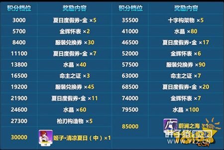 活动商店 【开放时间】6月29日凌晨4:00~7月10日凌晨4:00 【兑换说明】使用一定数量的夏日度假券·金、夏日度假券·银可以在活动商店兑换各类奖励: >>>兑换汽水(使用后可获得10点体力)——夏日度假券·银×10 >>>兑换西瓜(使用后可获得20点体力)——夏日度假券·银×15 >>>兑换救生圈(使用后可获得30点体力)——夏日度假券·金×5 此外还可以在活动商店中兑换服装兑换券、女武神·誓约碎片、通用进化材料等。 为了让时间有限无法参与活动的舰长也可以获得芽衣泳装服装——蔚澜之海,在活动商店中也可花费水晶直接购买芽衣泳装服装。 舰长无法获得1件以上的相同服装,购买的时候请一定要谨慎思考,以免造成损失!!!