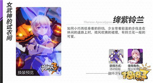 紫白配色的巫女服,也很适合德丽莎学园长呢! ★★★★★★每日活动任务★★★★★★ 活动期间每天参与万圣节活动关卡、完成下列任务,即可获得奖励: 1)参与任意万圣节活动关卡1次——金币×10000,黄昏提灯×4 2)参与任意万圣节活动关卡3次——金币×10000,黄昏提灯×4 ★★★★★★剧情关额外掉落★★★★★★ 活动期间,通关任意体力消耗≥10的剧情关卡(包括主线和外传),均可获得额外掉落:黄昏提灯! ======补充说明======1)舰长剩余的黄昏提灯将在11月7日4:00回收,同时活动商店内万圣节活动相关兑换也会下架,请舰长及时兑换哦。 2)11月3日4:00,服装「绛紫铃兰」(樱火轮舞适用)将上架服装商城,没有在排名活动中获得这件服装的舰长届时可以使用288服装兑换券兑换。