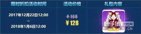 *活动结束后恢复原价。 礼包说明 「圣夜的蔷薇」是女武神·凯旋专属战斗服,礼包价格为168元(2017年12月22日12:00~2018年1月6日12:00为折扣价128元)。游戏内无法通过其他途径获得。 舰长充值购买该服装礼包后,将直接获得该服装。需要注意的是,礼包内不含水晶哦。 充值购买该服装礼包的充值金额将会以【购买金额×10】等价水晶累计到“已累计购买水晶”。