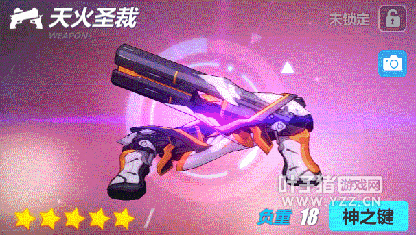活动武器 由旧文明第七律者核心制成的神之键,双枪形态的天火圣裁,主宰“炎”之力量,拥有最强大的破坏力。不过其真正的力量似乎被封印了…… 5★攻击:260 会心:45