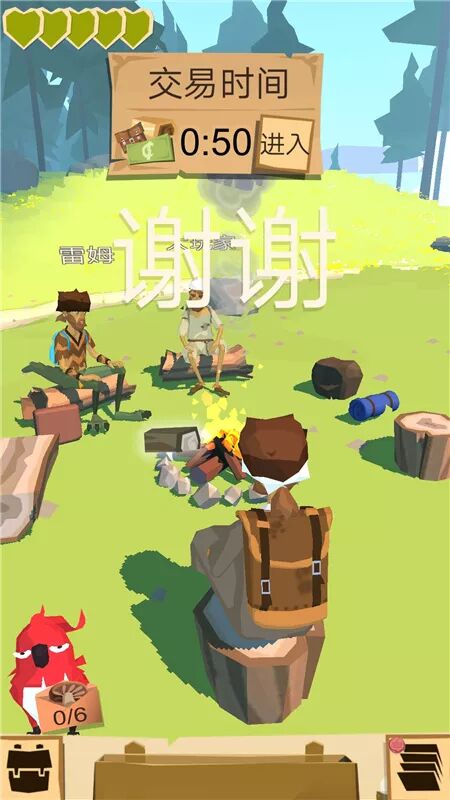 在营地篝火前,玩家们可以进入 交易系统 ,将自己背包中多余的物资售卖,换取渡河的资金或急需的其他物资。