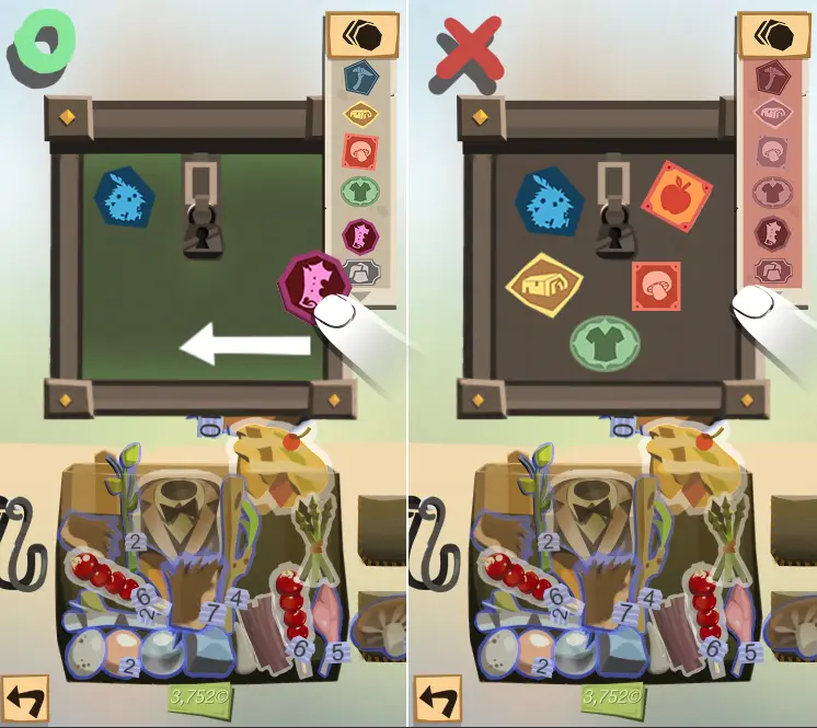边境的小物件这么可爱 又能体现游戏特色 还能一目了然保险箱里的材料 不是很好的贴纸素材吗 于是GUI小姐姐立马绘制出 代表各种物品的贴纸 玩具鸟、工具、木头、蘑菇 红的白的黄的蓝的紫的绿的 大的小的圆的扁的 各种花色各种款式任你选择 贴纸设计出来了怎么在游戏内使用呢 哪里有问题,哪里就有程序猿 他们把贴纸的使用设计成: 在点击保险箱后,保险箱打开之前 有一个贴纸列表 你可以将贴纸列表里的贴纸 拉出贴到保险箱上 每个保险箱最多可以贴5个贴纸 为了方便大家摆出多种造型 你可以长按贴纸进行旋转