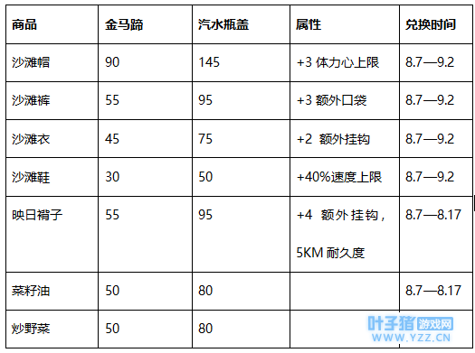 更新派对,登录送清凉 活动时间 2018年8月7日—2018年10月7日 活动内容 活动期间首次登录新版本,都可以免费获赠20个汽水瓶盖,且在版本更新前4日,即8月7日——8月10日,每日登录都可以获得5个汽水瓶盖,汽水瓶盖可以用来兑换本期活动的装备与配方。 新版欢庆,冷饮好礼多多 活动时间 2018年8月7日—2018年8月10日 活动内容 开服前4日,每日填箱收益翻倍,每个箱子旅行者可以获得额外的4个劳动奖章奖励,每日最多可填2个箱子。每日额外赠送一次活动福袋“夏日冷饮箱”的免费开启机会,且“夏日冷饮箱”可获得的瓶盖数量翻倍。 套装返场,新装备上线 活动内容 兑换商店上新!安娜带来了富有夏日气息的货物,使用活动专属代币“汽水瓶盖”可以兑换哦,也可以直接使用金马蹄购买。 兑换价格、时间及属性