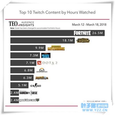 根据外媒数据,堡垒之夜视频播放市场超越英雄联盟和绝地求生,位居第一位,而绝地求生仅仅排在第三位,数据相差两倍以上。