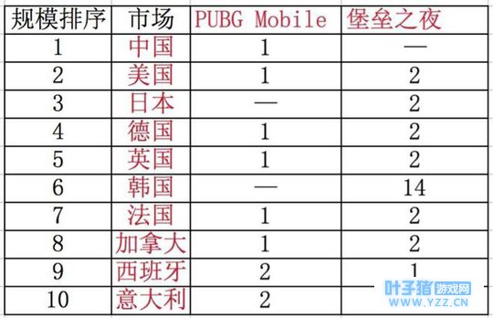 PUBG Mobile-App Store全球排名(3月22日21:00) 《堡垒之夜》上线不到24小时就拿下了100多个App Store市场游戏下载榜冠军。现在受到《PUBG Mobile》的冲击,名次稍有下滑。目前在18个App Store市场游戏下载榜位居第一,总共在120个市场位居TOP10——在不少市场都是被《PUBG Mobile》挤到了第2名。