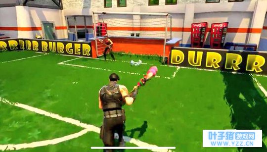 如果你在《堡垒之夜》的混战中感到疲惫,先别着急登出游戏。 前往西方集聚地的扭曲之塔(Twisted Tower)附近,你能发现一个室内足球场。 在这里个地方除了能找到各种武器和补给品之外还有一个足球,你可以挥动手中的镐敲打并将球打入对方的大门。 你可以找一个一起玩耍的好基友或附近的其他玩家一起,在这里一起用玩一场别开生面的足球赛。每当进球的时候还会有五彩纸从天而降来庆祝。 这个足球模式可能不会成为《堡垒之夜》的新游戏模式,但如果你相信别人能和你一样放下手中的武器,那么你们可以在这里很开心地玩耍一阵。当然要小心就是了,毕竟在大逃杀这个模式里,你无法阻止其他人在这里开枪大杀特杀,哪怕是围观的观众也可能会突然将你们的人头收下。 在《堡垒之夜》的游戏里,很多人也同样是认真而且喜爱足球的人,所以如果你干打扰他们比赛…… 最好先掂量一下自己是否有这个能力。 一个取材自其他游戏的作品,和一个取材自其他游戏的模式