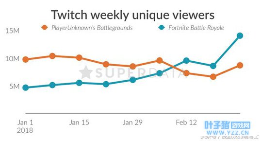 同样是PC版,参考superdata的数据,《绝地求生》在今年2月份收入为1.03亿美元,而《堡垒之夜》收入1.26亿美元。两款游戏的收入终于在《绝地求生》推出一年之际到达了一次互换。