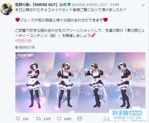 《荒野行动》在全面公测之后,2018年年初就开始推广了起来,游戏一度登上了日本地区的IOS畅销榜,而中国台湾,香港等地区也颇受欢迎。在推特上也有了超过37万的关注,这一数字在国内看来可能没什么,但是对于国际的手游市场来说,依旧是不错的成绩。 在昨天,官方还公布了一段动作捕捉主题的宣传视频,以及风格有些独特的女仆装皮肤。看起来,网易似乎是想让游戏在日本手游市场扎根。结合着网易与SE合作的《百万亚瑟王》系列手游来看,网易对于日本的手游市场是非常感兴趣的。