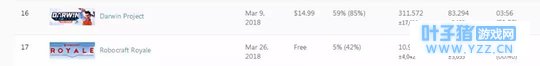 随着吃鸡游戏的走红,不少厂商都试图给自己的游戏打上“吃鸡”标签蹭一波热度。而为了避免与《绝地求生》正面碰撞,其他吃鸡类游戏必须像《堡垒之夜》一样另辟蹊径。在SteamSpy首页排行榜中,《达尔文计划》(DarwinProject)与《RobocraftRoyale》以独特吃鸡玩法脱颖而出。《达尔文计划》玩法类似电影《饥饿游戏》,主打直播互动,《RobocraftRoyale》则借由Steam的官方推特宣传下人数迅速蹿升。另外还有靠网友奔走相告悄然走红的《SOS》,游戏同样有“直播”要素, 16名玩家将被空投到热带岛屿上进行厮杀,一切战斗和暗杀都将被实况转播给观众们。以上这些游戏多处于抢先体验阶段,正式版还需一段时间。