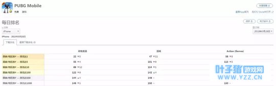截止至3月28日,《PUBGMobile》ios版在22个国家/地区的下载量排名第一,高于《堡垒之夜》,因尚未开放游戏商城而没有计算游戏收入。