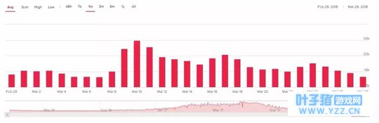 《H1Z1》作为曾经的吃鸡领头羊,在宣布免费后在线人数有所回升,但却日活跃人数始终未超过3万,免费两周后玩家更是大量流失,Daybreak的复兴之路依旧长路漫漫。