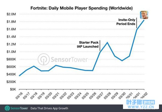 《堡垒之夜》手游下载量超1100万次,首月收入1500万美元