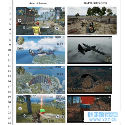 《荒野行动》被控抄袭《绝地求生》游戏内容 《绝地求生》开发商PUBG Corp.近日终于对中国网易旗下两款吃鸡手游《荒野行动》、《终结者2》(Rules of Survival)提出侵权诉状,不过,多家外媒报道纷纷点名,同样是采「大逃杀」玩法的《堡垒之夜》并不是PUBG本次的诉讼对象。 根据PUBG Corp.上交155页诉状,明确指出不论是玩家出生地,飞机空投跳伞,地图样式,角色行动,装备种类,武器弹药,甚至是载具建筑环境模块等,网易旗下的《荒野行动》、《终结者2》内容皆抄袭《绝地求生》的知识产权。当然,百人大逃杀、空投与缩圈玩法自然也是重点之一。