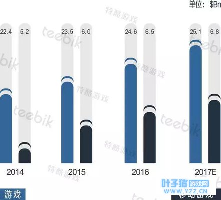 不过,这些成功原因说到底也并非Epic Game有预谋的实施,诸如主播带量在Epic Game自身并未发起奖励活动的情况下,观众与主播的互相满足就成了一种双向选择;而《堡垒之夜》的梗文化同样也是大量受众基础之上才被动催生出的亚文化圈;至于游戏本身品质,已经有无数先例证明,在市场认可这一类别之前,品质本身是不可能具有太多主导权的。 还有一个重要的矛盾是,《王者荣耀》当初的成功,一定程度上是被归因于对MOBA游戏“操作降级”设计的成功,但《堡垒之夜》却完全不是如此。别的不说,光是这款游戏雄心勃勃的多终端互通战略,就决定了移动版《堡垒之夜》不可能在游戏机制上比端游简化,“操作降级”是不成立的。 也就是说,实际上《堡垒之夜》所谓的优势都并非它能够挤占吃鸡市场的理由,而仅仅只是体现这一结果的表现罢了,这可能完全就是个巧合,移动版《堡垒之夜》也并不在最开始的规划中,而是顺水推舟的行为。 这些事实恐怕都指向了一个这样的结论:《王者荣耀》和《堡垒之夜》如今的成就以及高居神坛的立场,几乎都是通过“配合”达成,主动出击的效果反倒没什么体现。但它们却在市场选择中,成为了不同国家国民级游戏+类型手游市场的开辟者和见证者。 市场认知的意义 《堡垒之夜》大刀阔斧的进场,确乎是在重演当初《王者荣耀》的高光时刻,只是如上文所言,它们虽然是爆款和开拓者,却又并不是指引者。换言之,《王者荣耀》从各方面都并不会给《堡垒之夜》带来成功经验和模式借鉴,《王者荣耀》早晚会迎来实力强劲的接班人,与《堡垒之夜》的市场争夺也会渐行渐远。但是,二者对于各自领域的手游市场而言,却都是意识形态上的一场拷问。 根据Newzoo的数据统计,美国游戏市场中,移动游戏占比一直在逐年上升,2017年已经占比达到25.1%。虽然移动游戏并非美国游戏市场的主力军,但高达59%的付费用户比却展示了更具潜力的市场表现。
