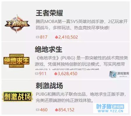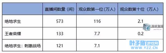而在各大主流平台,斗鱼的《王者荣耀》与《绝地求生》热度值相当,《绝地求生:刺激战场》则是前两者的三分之一。