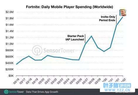 大逃杀手游收入榜爆发:《堡垒之夜》20天收入1500万美元