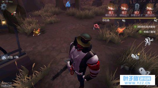 一开始的游戏设定和黎明杀机有很像,通过右上角的小图,就可以一开始逃生在被抓是挂起来的,黎明杀机是直接挂树上,而第五人格更恐怖,挂绞刑架。