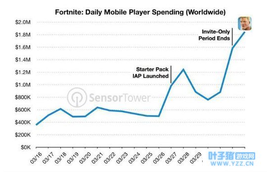 最近,移动应用市场研究公司Sensor Tower发布了《堡垒之夜》手游的一些数据。这间机构称虽然《堡垒之夜》手游目前只推出了iOS版本,但在上架后的第一个月,该作全球下载量已经超过1100万次,收入超过了1500万美元。