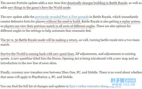 昨日,外国媒体gameinformer发表文章,文章中说堡垒之夜最近更新,而且更新的内容还很多,包括大逃杀模式、新武器、回放设置等等。