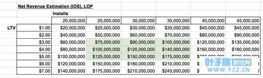 让我们再做一个假设:如果《堡垒之夜》手游(iOS版本)的ARPI值快速增长,达到目前的3~5倍,那么其平均每用户终身价值(LTV)也许会上升到3~5美元。 作为一名传统、老派的F2P游戏设计师,我很难想象《堡垒之夜》的装饰性道具(即便采用了更有创意的设计)收入会超过这个水平……时间会证明我的预测是否正确。