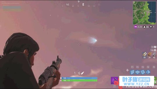 神秘物体正在接近地面: 如若你注意到了,在堡垒之夜地图中,出现了一个神秘物体,有点像流星的物体正在天空中呈现(如下图所示)。该物体首次是出现在3月20日的版本更新中,但当时它还是呈现很小的形态。然而如今,它的形状越变越大了!甚至你还能看到除了那个神秘物体,在其周围还有其他的流星出现在天空!并且Reddit官方表明国际服明天也就是北美东部时间(4月19日,本文写于北美东部时间4月18日,即国内时间4月19日)将更新版本!具体内容明天才能看得到。但也有可能是全新模式50v50将在明天出现!