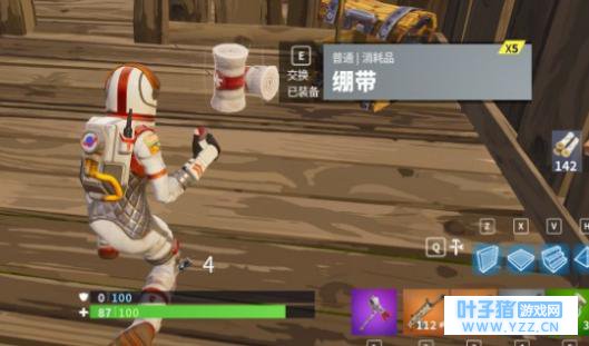 游戏中的绷带与小盾 小护盾:使用时间2秒,增加25点护盾,(最多增加至50),拾取一次共有3个,最多带10瓶。 大护盾:使用时间5秒,增加50点护盾,(最多增加至100),拾取一次共有1个,最多带2瓶。 绷带:使用时间3.5秒,回复15点生命,(最多回复至75),拾取一次共有5个,最多带15个。 急救包:使用时间10秒,生命值加满,拾取一次共有1个,最多带3个。 果汁:使用时间2秒,缓慢回复25生命和护盾,(最多增加至100)。 突突壶:使用时间15秒,生命值和护盾全部加满。 在自己已经不能再继续使用药品的情况下,常用的排序是: 小护盾>急救包>大护盾>绷带>果汁>突突壶 小护盾是堡垒君最喜欢的药品,不仅刷新多,而且使用快,可以带十个。玩家在游戏中可以依据药品的数量合理选择。 我需要多少建筑材料?