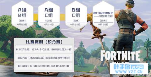 比赛共计4天,4月23日到4月25日是小组赛,A、B、C三组分组对抗,4月26日将举办最后决赛。每10支队伍一组,每天两组(共20支队伍)进行淘汰厮杀争夺积分,积分体系计算方法为:总分数=名次分数+击杀数*击杀分数,积分前20的队伍将在26日的决赛中决出前三名,并颁发“金锄头”奖。
