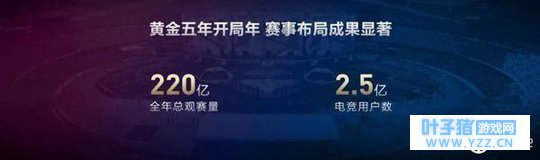 电竞 腾讯电竞宣布,通过对英雄联盟系列赛事与王者荣耀系列赛事的「双火车头」布局,腾讯电竞发展的 11 项电竞赛事增长迅速,全年总观赛量突破 220 亿人次,电竞用户数突破 2.5 亿,而他们认为,2018 年将成为中国电竞黄金五年的「深度布局年」。