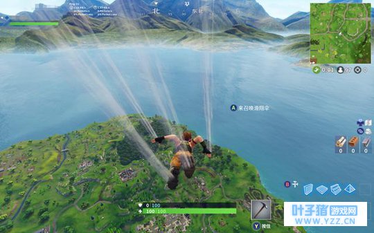 当可以跳伞后,按下A键即跳下公车。与一般吃鸡不一样的是这里是可以马上开伞的,而且在一定时间内伞也是可以收回去的。 而且从画面可见,所有操作按键的提示也已经变成了手柄按键的图标。