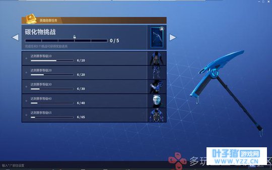 碳化物的任务共有五个,在你赛季等级达到10、20、30、40、65级后便可解锁碳化物套装的额外装扮,并且在65级任务完成时额外获得碳化物锄头武器,集齐全部饰品的话可以让整个皮肤都焕然一新!