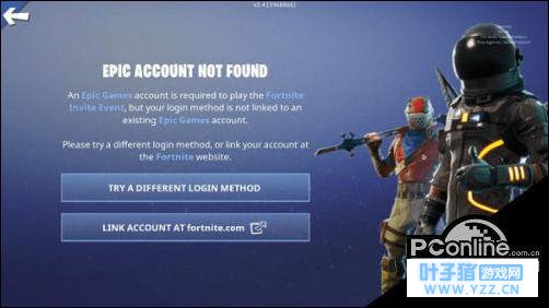 4.登陆后显示“EPIC ACCOUNT NOT FOUND”怎么办? 这是因为您的Face book、Google、PlayStation、Xbox账号还未跟Epic Games账号绑定,点击“LINK ACCOUNTN AT fortnite.com”,按提示绑定即可。